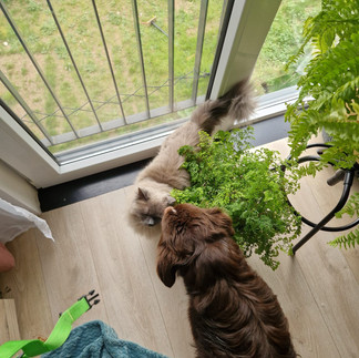 Maar mevr durft het niet aan om de kat nog met Chico te laten lopen.
